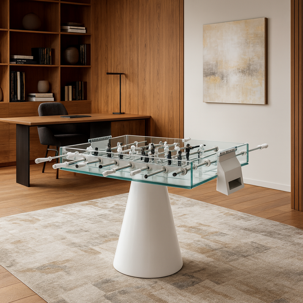 Een meesterwerk van Italiaans design en vakmanschap: de FAS Ghost is allesbehalve een standaard voetbaltafel. Ontworpen door het gerenommeerde duo Basaglia & Rota Nodari, combineert deze tafel transparant kristalglas met een elegante, minimalistische uitstraling – een adembenemend meubel dat naadloos opgaat in iedere luxe interieursetting.