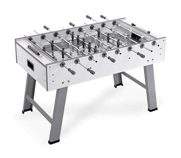 De FAS Charme brengt stijl en spelplezier samen in één elegant ontwerp. Met zijn strakke witte afwerking, gehard glazen speelveld en chroomstangen van professionele kwaliteit is deze voetbaltafel een echte blikvanger voor elke luxe speelkamer of kantoorruimte. Gemaakt in Italië en gebouwd voor intensief gebruik, biedt de Charme een soepel, snel en precies spel dat elke wedstrijd tot een belevenis maakt.